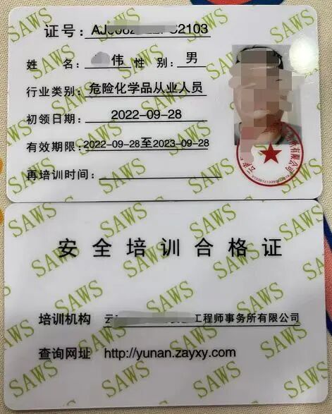 非高危行业安全合格证:一般工贸主要负责人/安全管理人员、危险化学品从业人员、烟花爆竹零售从业人员