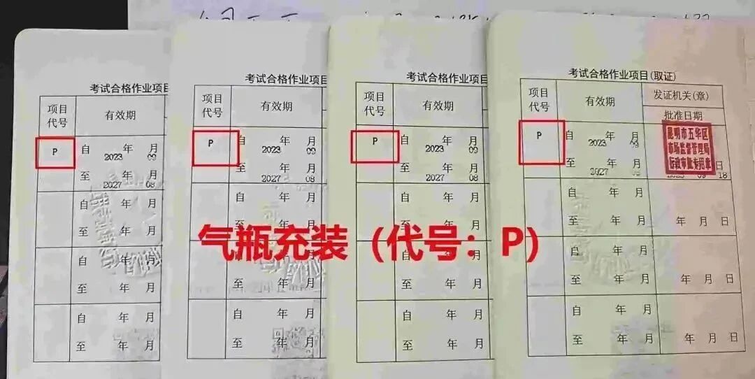 一、气瓶充装P证证书类型